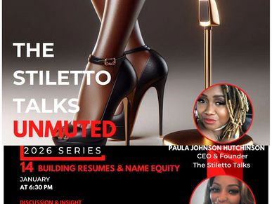 Join us for Stiletto Talks Unmuted on January 14, 2026, featuring special guest Charlsie Harris, HR and Talent Acquisition professional. This free, online conversation is designed to help women elevate their professional presence by building résumés that stand out and strengthening their name equity in competitive spaces.